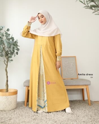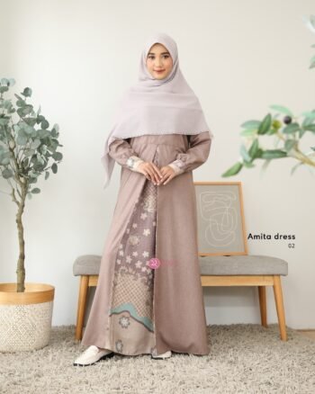 Dress Amita – Sentuhan anggun dengan material berkualitas, diproduksi dari material kombinasi polos katun madinah dan serena silk motif. Dress Amita dilengkapi juga dengan aksen ploi di bagian depan, bikin tampilan makin elegan ✨